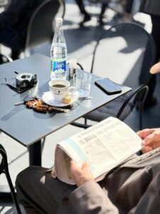 And for those early hours, when the village is just waking up, Cellar²⁵ transforms into an ideal spot for coffee in the center of Litochoro — sun-drenched, calm, and quietly alive.